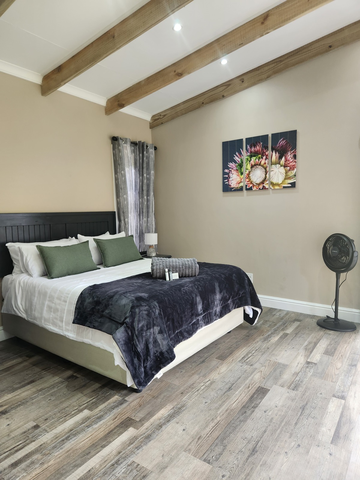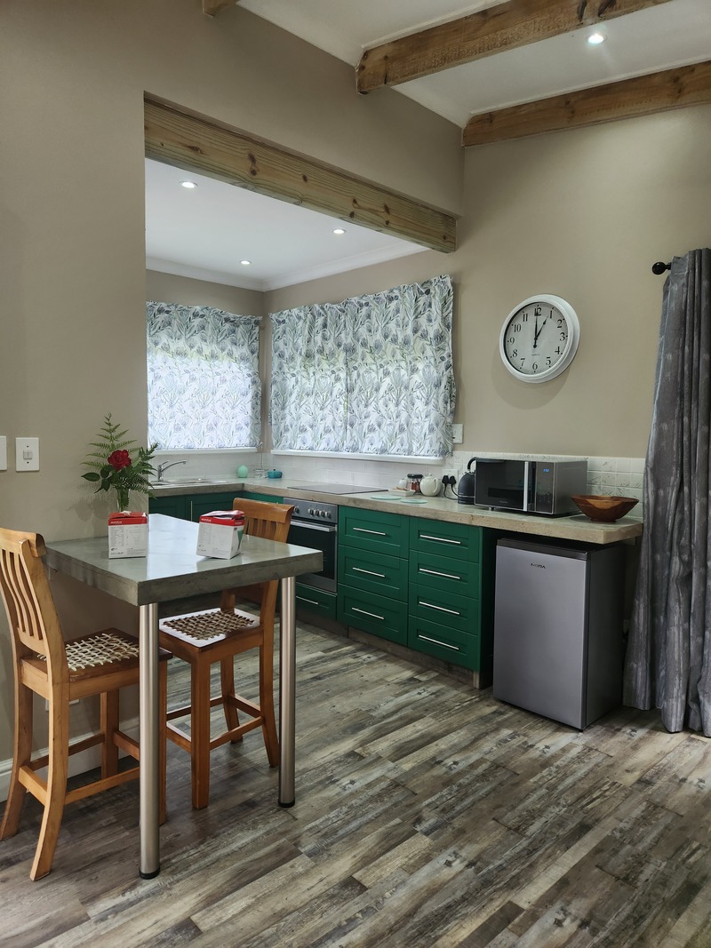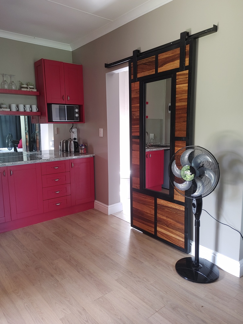 It features a queen size bed, television with Showmax, Netflix and Youtube, Electric blanket, additional blanket, gas heater and fan. In the kitchen you will find a small fridge, stove, oven, microwave oven, kettle and toaster.